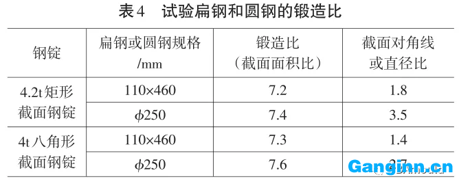 實驗鑄鋼件以及鍛制鍍鋅扁鋼和園鋼的橫截面平面圖如圖所示3所顯示, 煅造例如表4所顯示。
